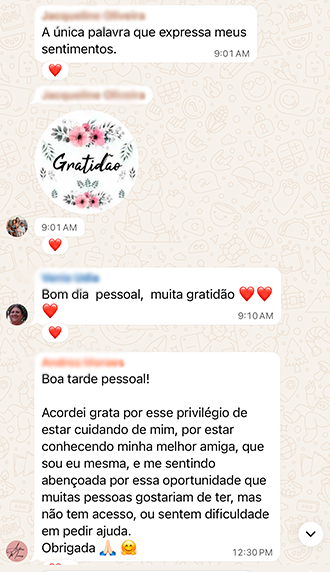 Conexão com outras pessoas comprometidas com o próprio processo de mudança. Trocas verdadeiras e apoio constante, sem fórmulas prontas.